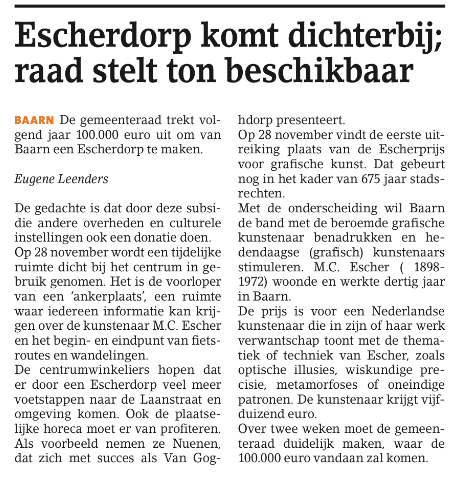 Het project Escher in Baarn loopt al enige tijd en men wil hier nu nieuw leven inblazen, ook omdat de rechten inmiddels van eigenaar zijn gewisseld en dit blijkbaar een kans biedt.